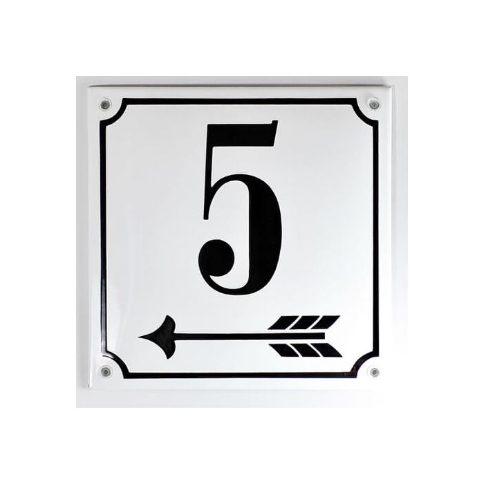 Berliner Hausnummer mit Richtungspfeil in Emaille 20x20 cm